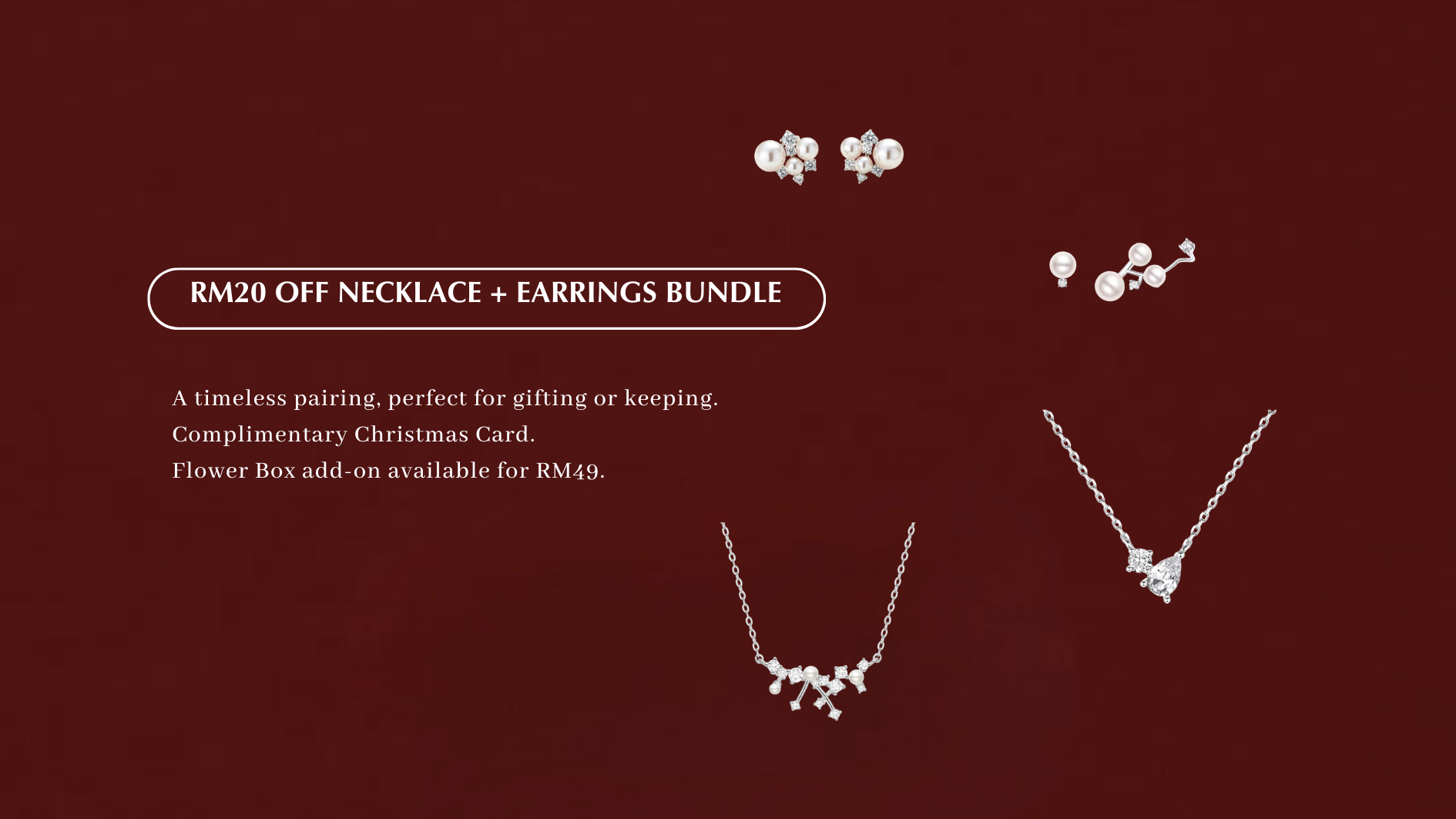 Add your chosen necklace and earrings to cart. Discount will be automatically applied during checkout.